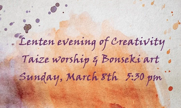Join us on Sunday, March 8th at 5:30 pm for a gentle evening of song, word, prayer, art and fellowship!